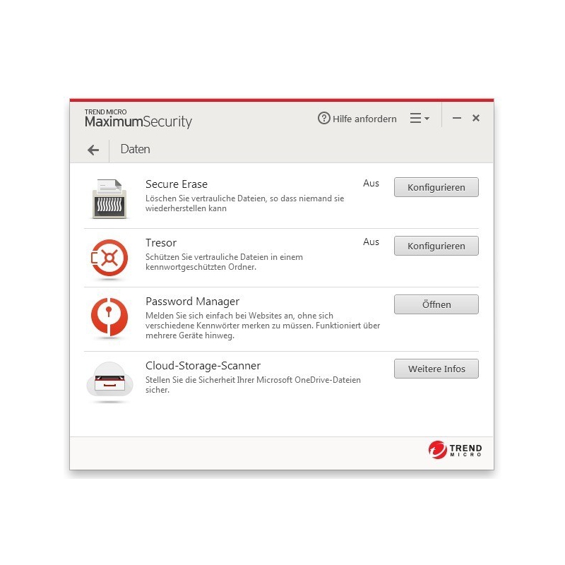 Trend Micro™ Security bietet erweiterte Sicherheit und Datenschutz im Internet, damit Sie sich online jederzeit sicher fühlen können. Zudem enthält die Software die neueste Technologie gegen Ransomware. Fachexperten haben Trend Micro Security kürzlich als 100 %-igen Schutz gegen Bedrohungen aus dem Internet1 bewertet.