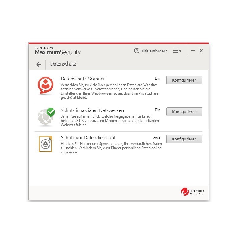 Trend Micro™ Security bietet erweiterte Sicherheit und Datenschutz im Internet, damit Sie sich online jederzeit sicher fühlen können. Zudem enthält die Software die neueste Technologie gegen Ransomware. Fachexperten haben Trend Micro Security kürzlich als 100 %-igen Schutz gegen Bedrohungen aus dem Internet1 bewertet.